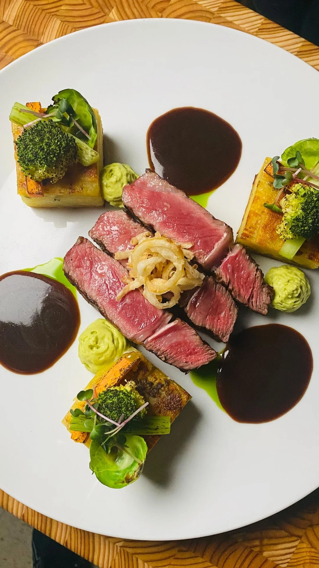 The menu reflects this background, with dishes developed in-house and shaped by international influences.